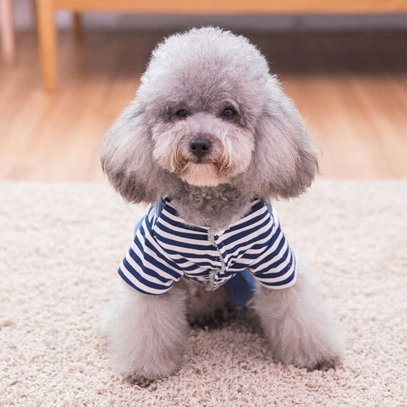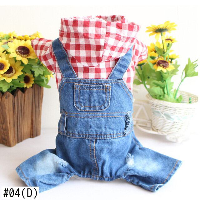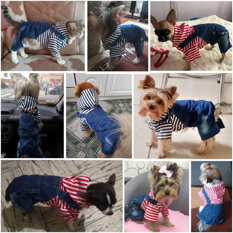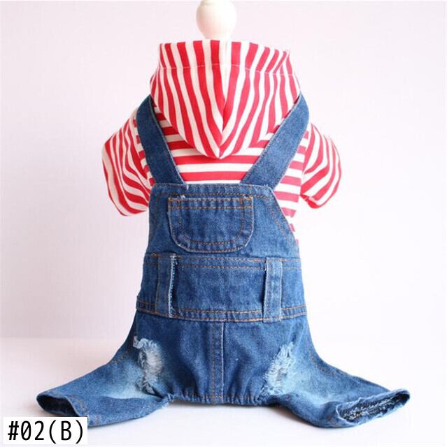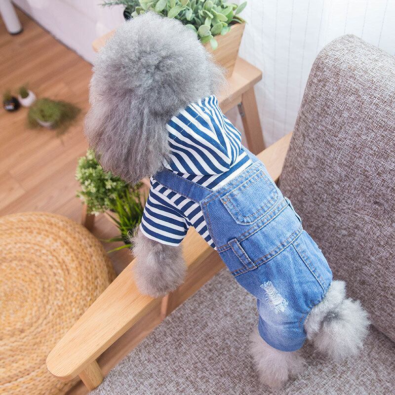 ドッグジーンズストライプデニムペットジャンプスーツパンツドッグフォーフットドッグ服デニムジーンズチワワヨーキーパピー jul6506350395