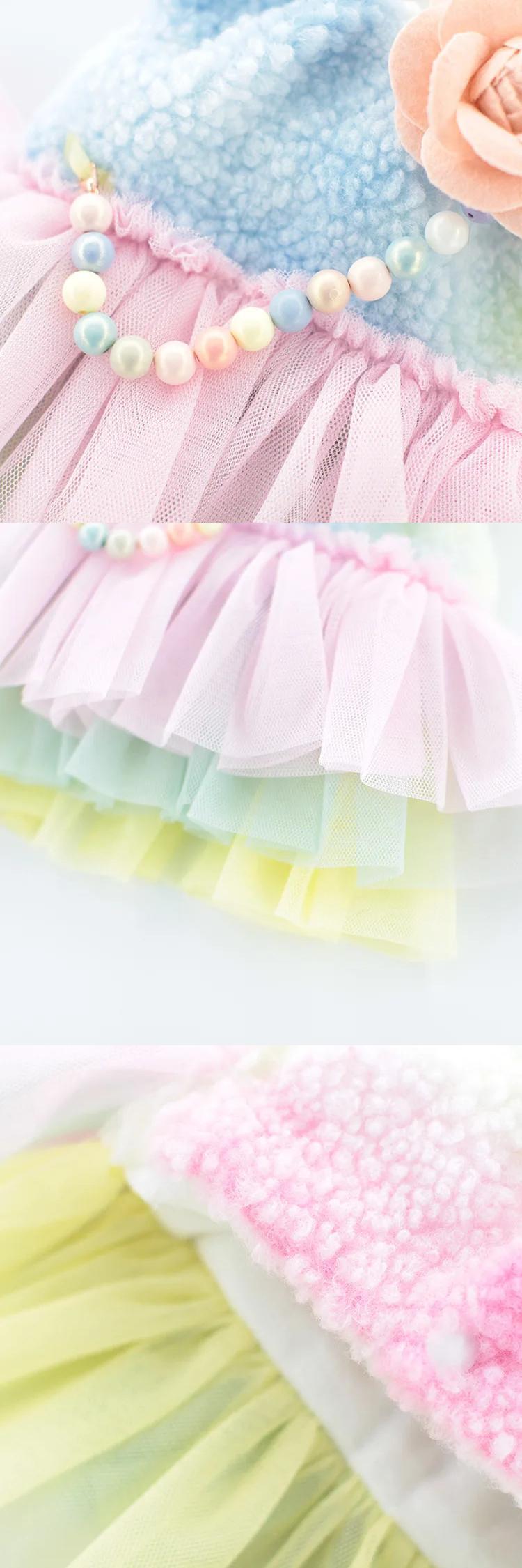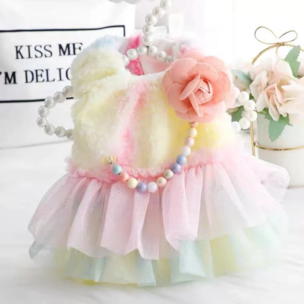 子犬ドレス秋冬猫暖かいベスト小型犬ウール厚いスカート甘いフラワーコートヨークシャーブルドッグプードル 大人ガーリー スウィート キュート カジュアル オータム 秋物 ウィンター 冬物 フラワーデザイン | DOG POINT