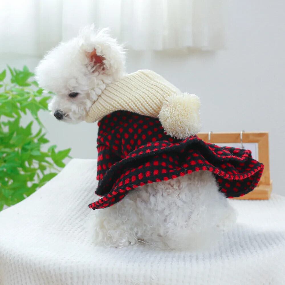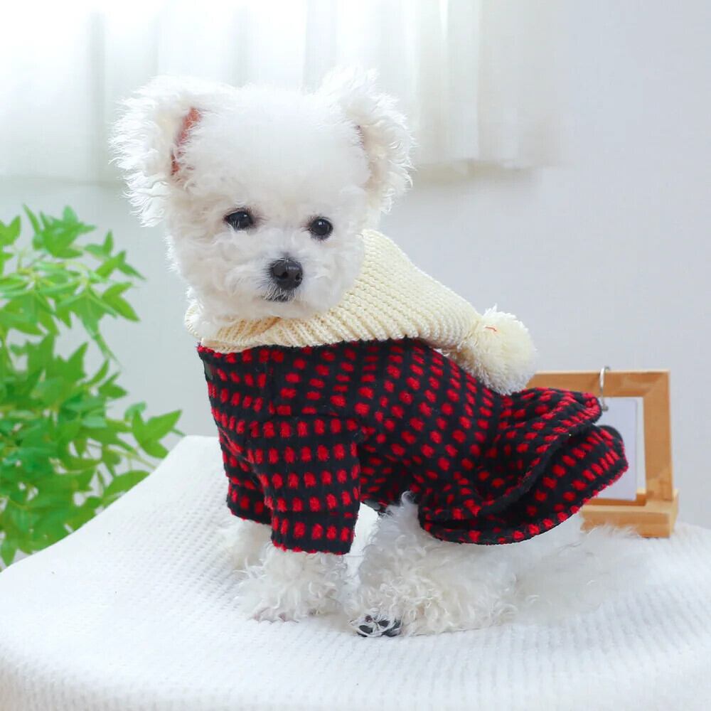 ペット秋冬かわいいチェック柄ドレス小型犬ドレス猫暖かいセーター子犬パーカーヨークシャーポメラニアンチワワ 大人ガーリー スウィート キュート カジュアル オータム 秋物 ウィンター 冬物 | DOG POINT