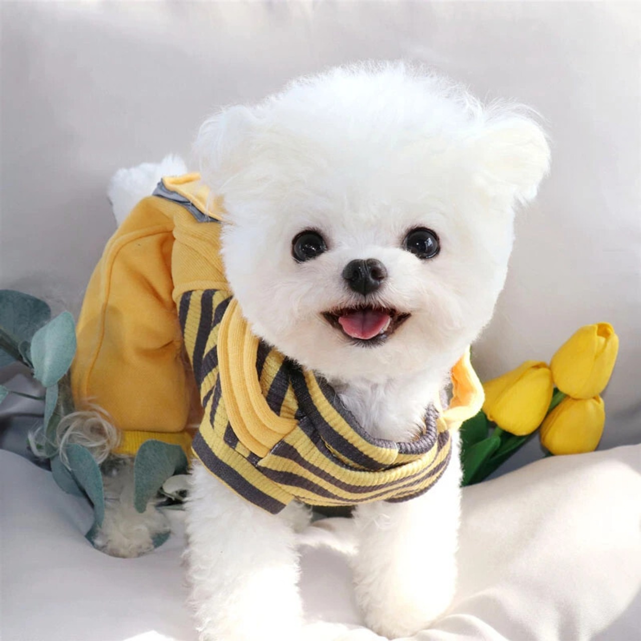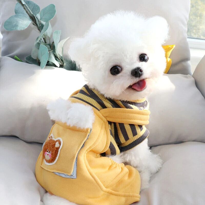 子犬ジャンプスーツ冬秋かわいいストライプセーターペット漫画小型犬ソフトパジャマヨークシャーマルチーズチワワ 大人ガーリー スウィート キュート カジュアル オータム 秋物 ウィンター 冬物 | DOG POINT