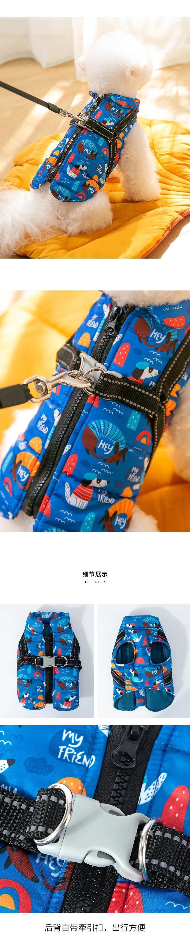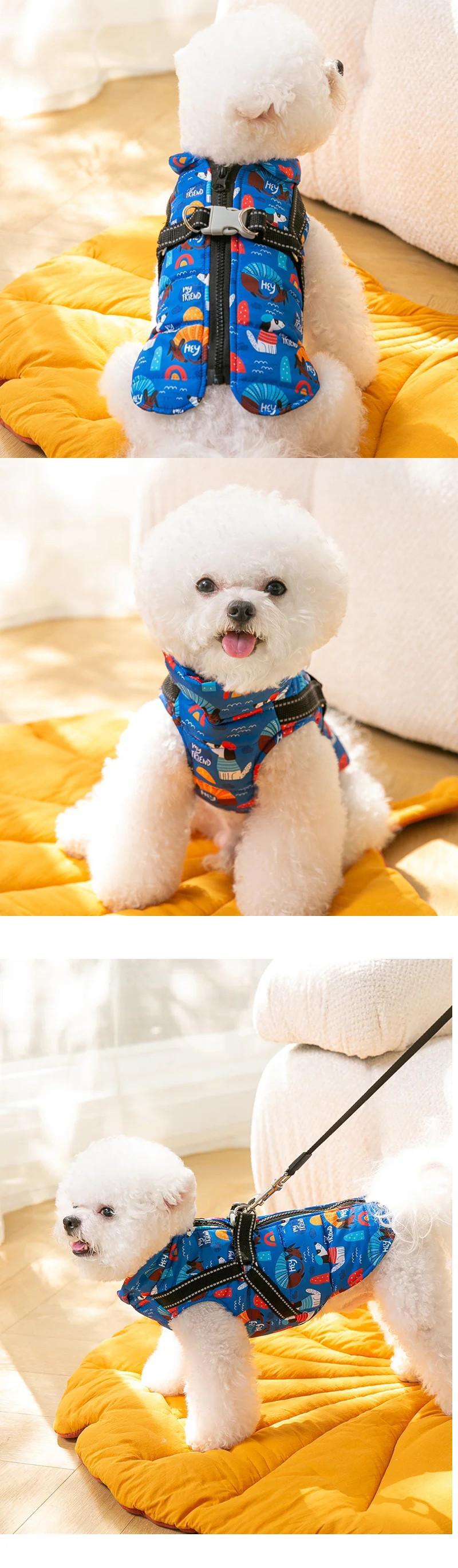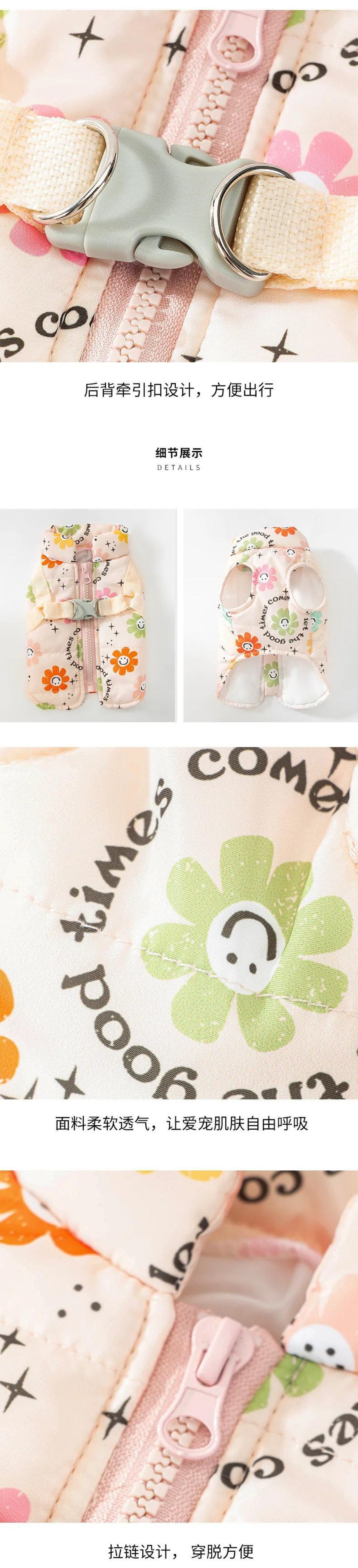 ペット綿入り秋冬中小型犬防風暖かいコートジャケット子犬スイートコート調節可能ハーネス コットン 大人ガーリー スウィート キュート カジュアル オータム 秋物 ウィンター 冬物 アジャスタブル ベルト | DOG POINT