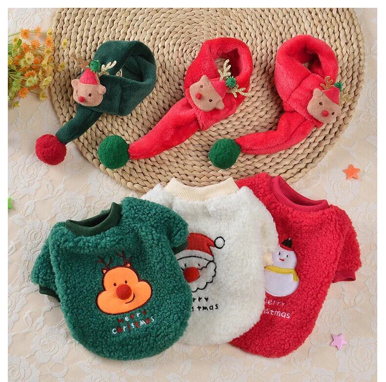 ペットクリスマス秋冬中小型犬セーター甘いスカーフ暖かいウール子猫子犬ホリデー s ダックスフント パグ 大人ガーリー スウィート キュート カジュアル オータム 秋物 ウィンター 冬物 | DOG POINT