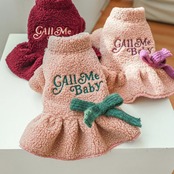 ペットドレスラムウールコートかわいい弓秋冬保温スカート子犬小型犬チワワヨークシャーブルドッグ猫セーター リボン 大人ガーリー スウィート キュート カジュアル オータム 秋物 ウィンター 冬物 | DOG POINT