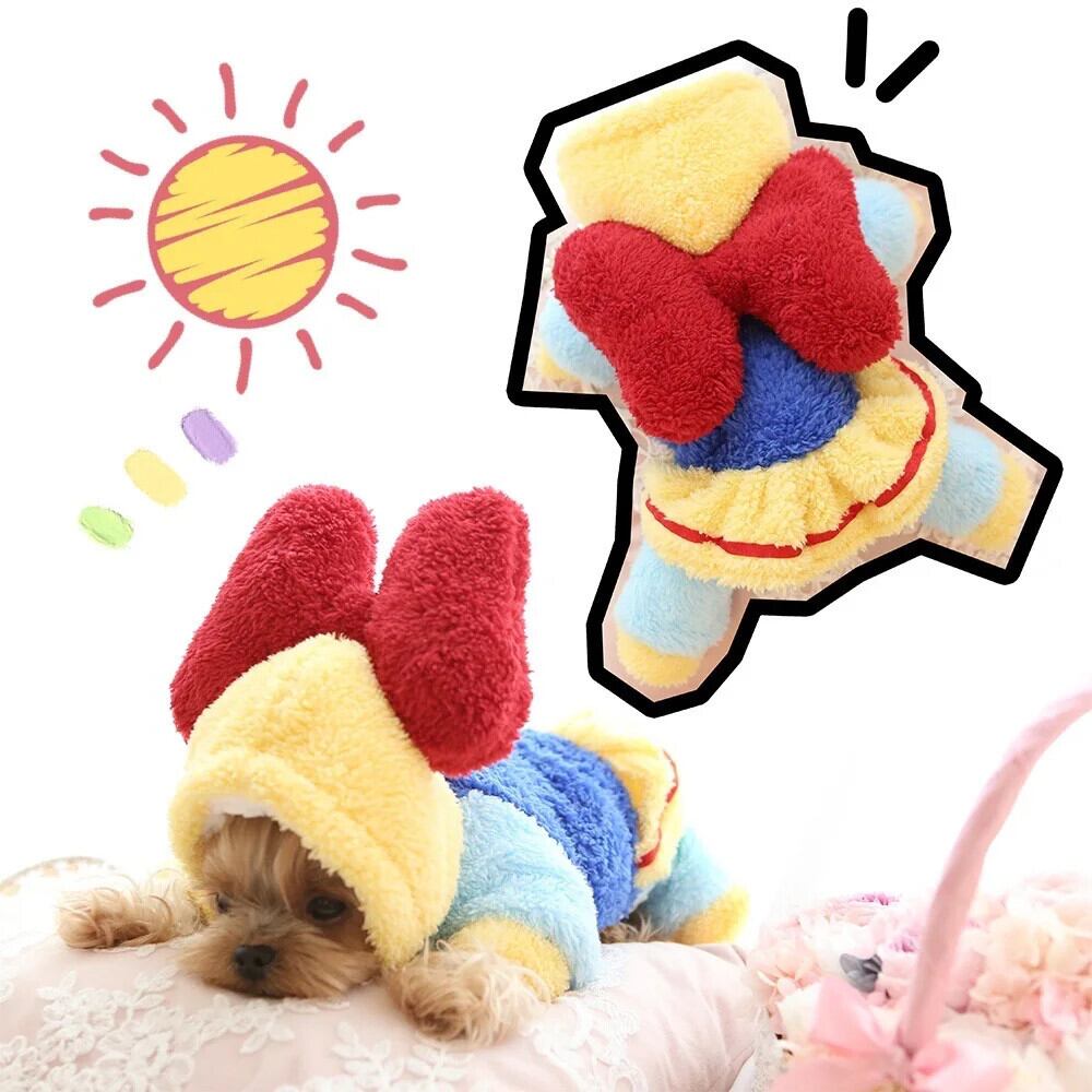 子犬暖かいジャンプスーツ秋冬甘いちょう結びセーター猫ウールコート小型犬かわいいパーカーペットパジャマプードルヨーキー リボン 大人ガーリー スウィート キュート カジュアル オータム 秋物 ウィンター 冬物 | DOG POINT