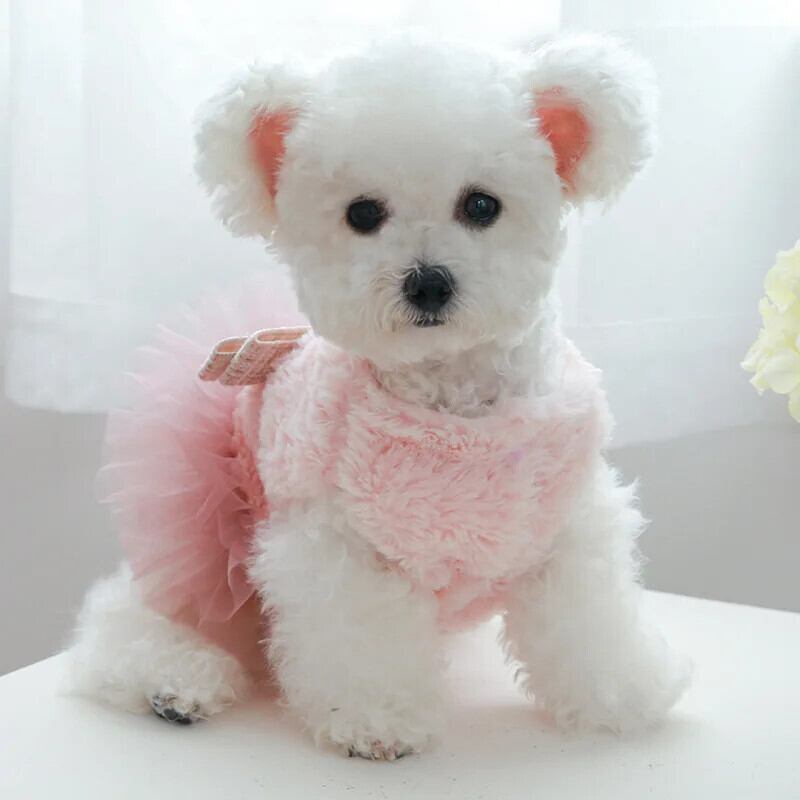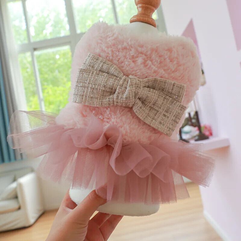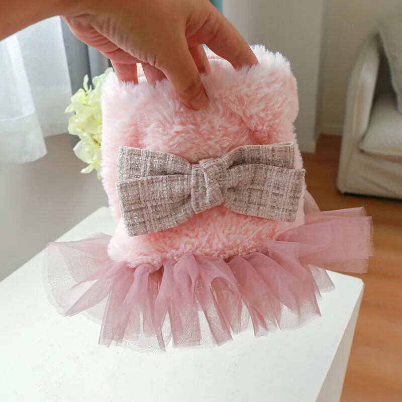 子犬秋冬スカート小型犬ウールドレスかわいいちょう結びガーゼスカート猫コートチワワヨークシャーブルドッグ リボン 大人ガーリー スウィート キュート カジュアル オータム 秋物 ウィンター 冬物 | DOG POINT
