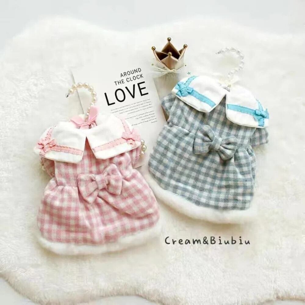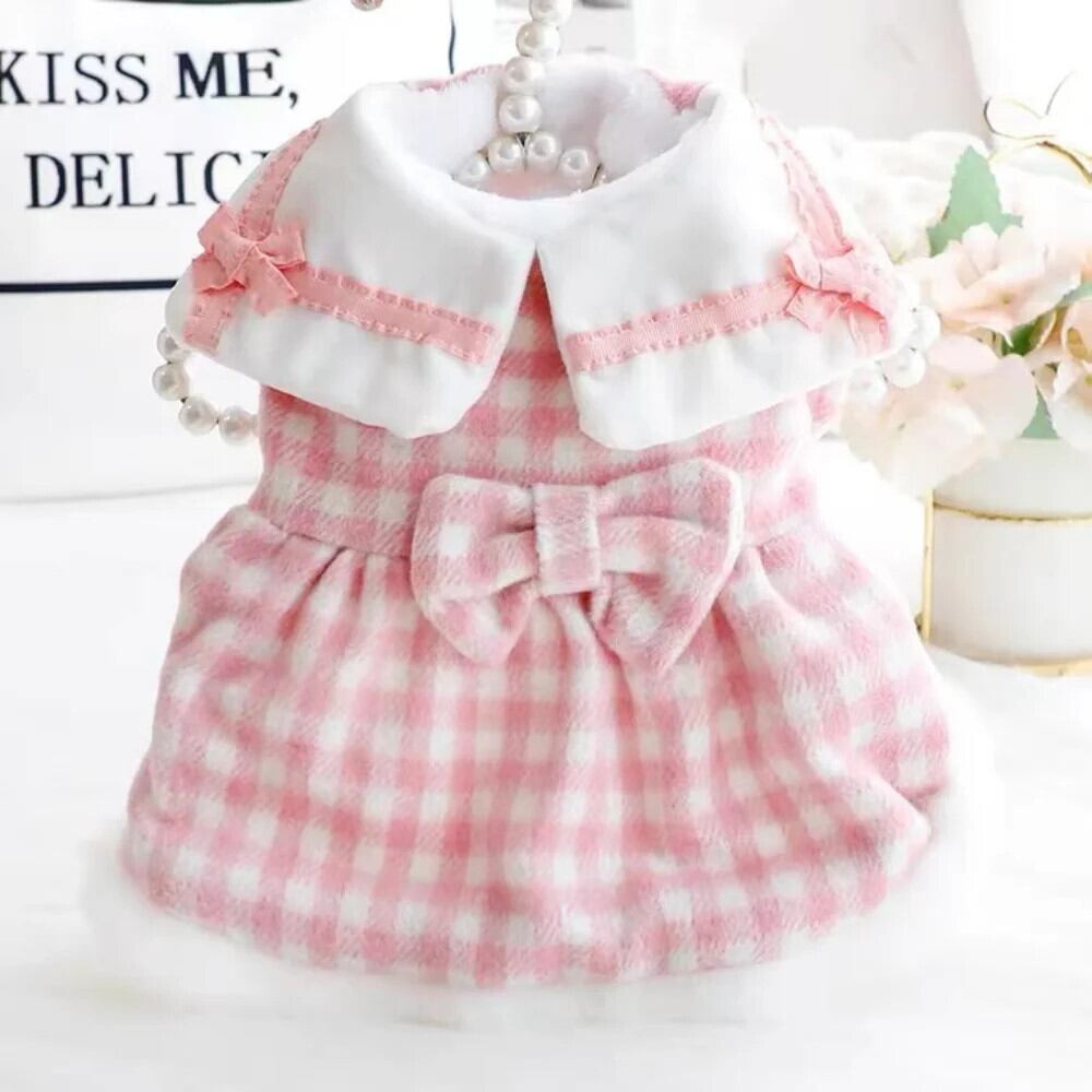 ペット冬秋中小型犬暖かいドレス猫ウール甘いスカート子犬チェック柄コートチワワヨークシャーブルドッグ 大人ガーリー スウィート キュート カジュアル オータム 秋物 ウィンター 冬物 | DOG POINT