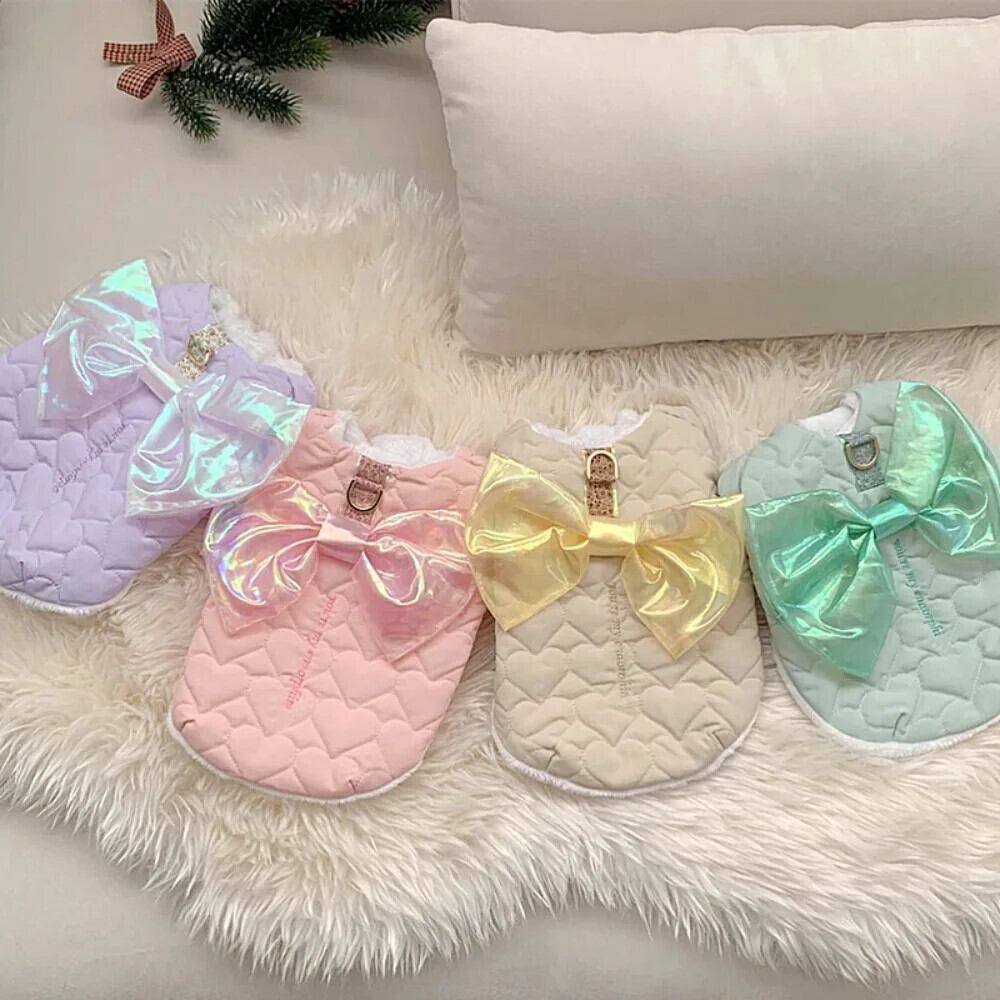ペットベスト冬秋暖かいセーター小型犬かわいいちょう結び猫ハーネス子犬ジャケットプードルチワワヨークシャー リボン 大人ガーリー スウィート キュート カジュアル オータム 秋物 ウィンター 冬物 ベルト | DOG POINT