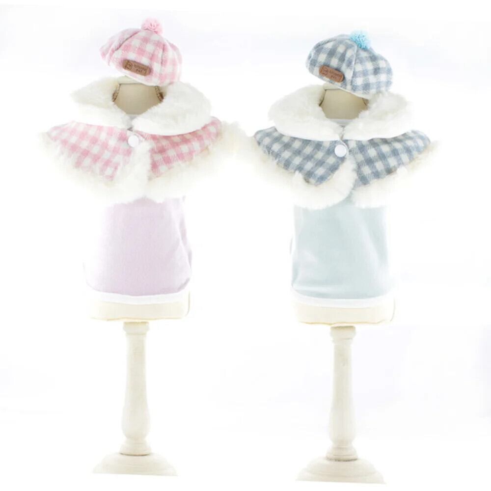 ペット秋冬ウールマント猫チェック柄セーター小型犬暖かい甘い帽子子犬かわいい厚いコートブルドッグヨークシャー 大人ガーリー スウィート キュート カジュアル オータム 秋物 ウィンター 冬物 | DOG POINT