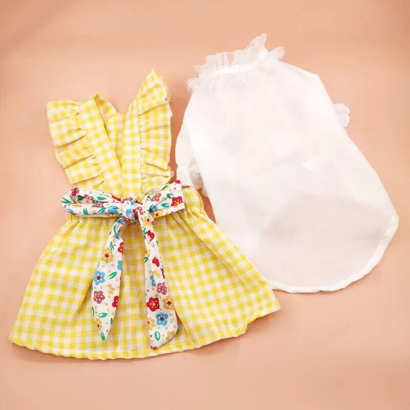 ペットドレス冬秋チェック柄スカート小型犬かわいいちょう結びシャツ猫甘くて暖かいセータープードルヨーキーチワワ リボン 大人ガーリー スウィート キュート カジュアル オータム 秋物 ウィンター 冬物 | DOG POINT