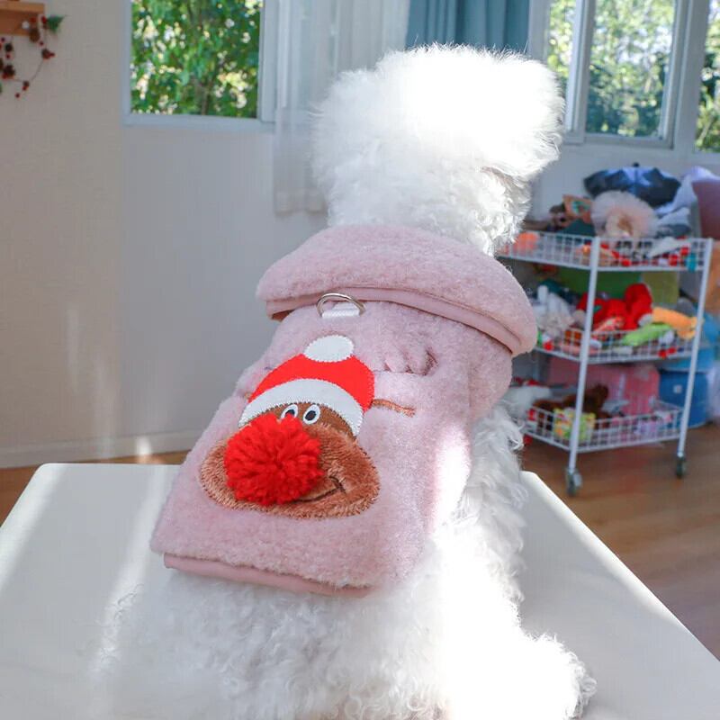 ペット暖かいベスト秋冬中小型犬クリスマスヘラジカハーネス子猫子犬甘いピンクコートマルチーズプードル 大人ガーリー スウィート キュート カジュアル オータム 秋物 ウィンター 冬物 ベルト | DOG POINT