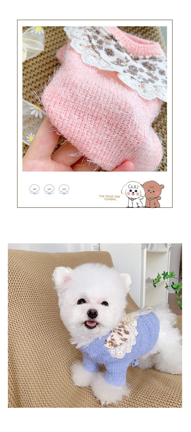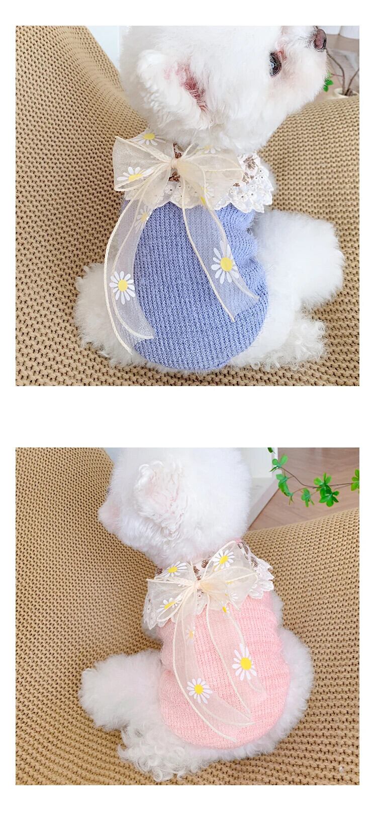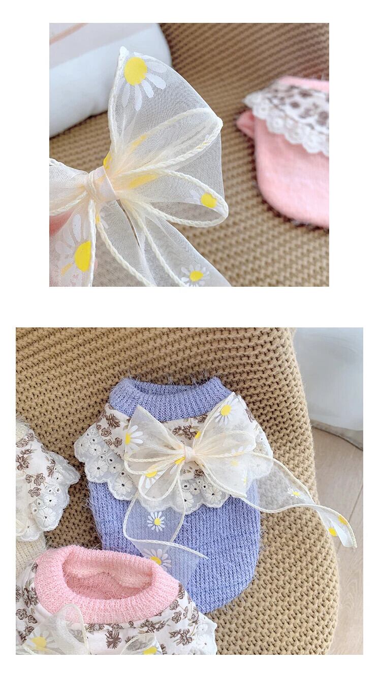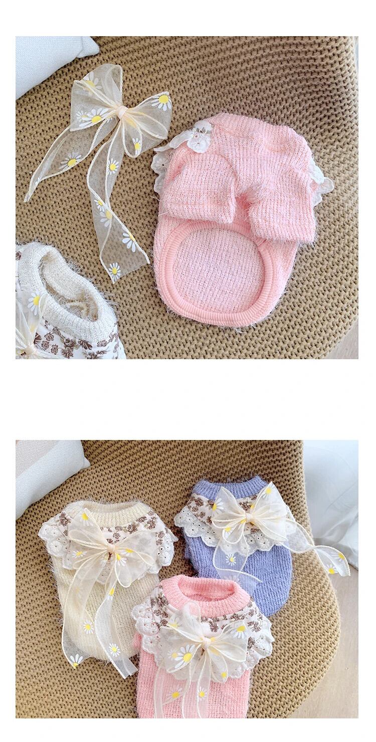 ペット冬秋暖かいセーター猫甘いちょう結びプルオーバー中小型犬ウールコートレースフラワーシャツプードルヨークシャー リボン 大人ガーリー スウィート キュート カジュアル オータム 秋物 ウィンター 冬物 フラワーデザイン | DOG POINT